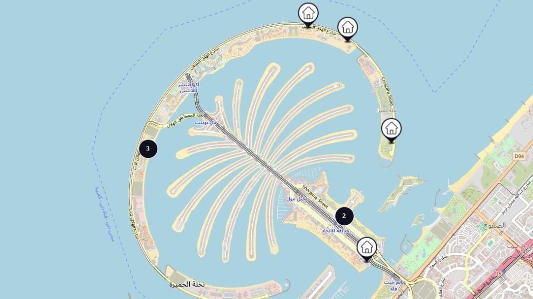Property prices on Palm Jumeirah have shown consistent long-term growth. According to ValuStrat, villa values in Dubai’s most popular communities—including Palm Jumeirah—rose by more than 100% between 2020 and 2024. In the first five months of 2025 alone, Palm Jumeirah prices increased by 18.9%. Strong demand, limited land supply, and a reported shortage of 10,000 villas across Dubai further support continued upward pressure on prices. For long-term investors, Palm Jumeirah offers a rare combination of exclusivity and sustained capital growth.Dubai Palm Island Location & Regional Advantages